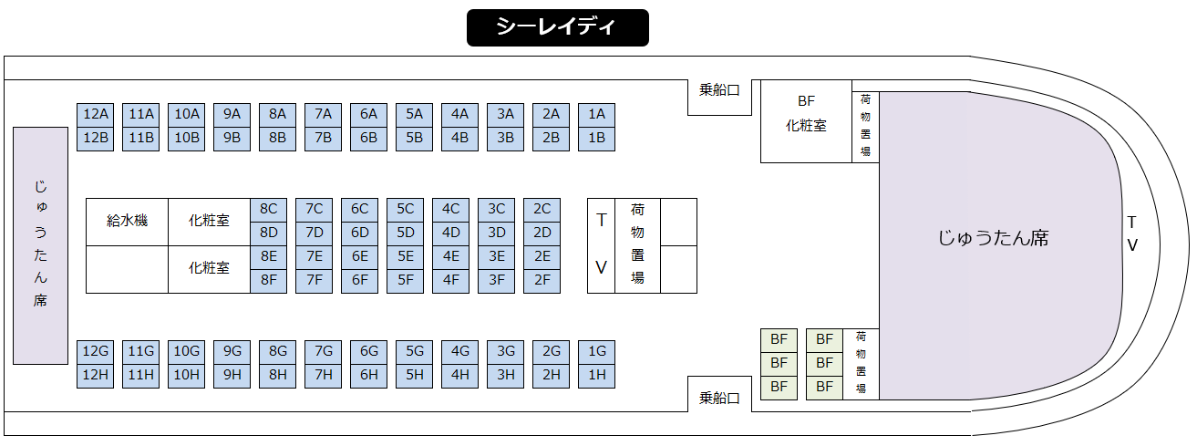 ただし、幼児が1人で座席を使用する場合は小人運賃をいただきます。 - 船内に売店・自販機はございません。(給水機はあり)
