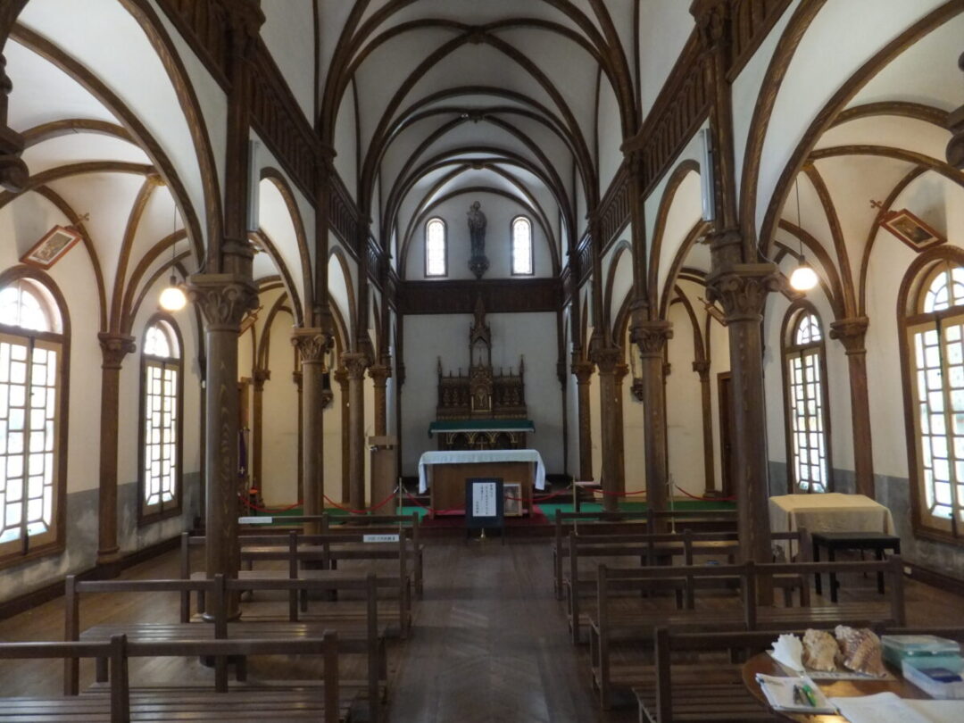 - 2018年登録となった、世界文化遺産「長崎と天草地方の潜伏キリシタン関連遺産」の構成資産である江上天主堂へ立ち寄ります。