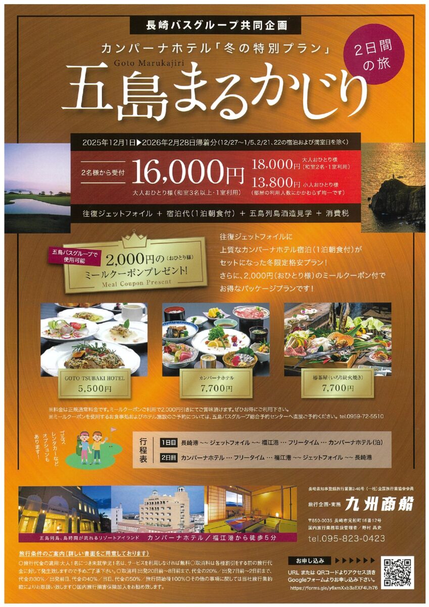 下五島 ミールクーポン付きフリープラン(往復船運賃+宿泊費+ミールクーポン)