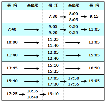2026年1月~2026年9月の長崎~五島航路ジェットフォイル便の運航ダイヤをお知らせいたします。(4月~9月は申請中)