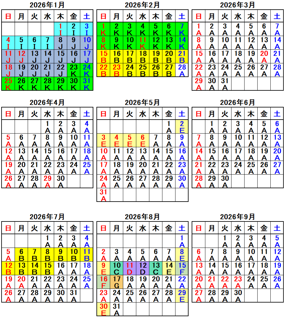 なお、都合により急きょ変更になる場合がございますので、予めご了承ください。