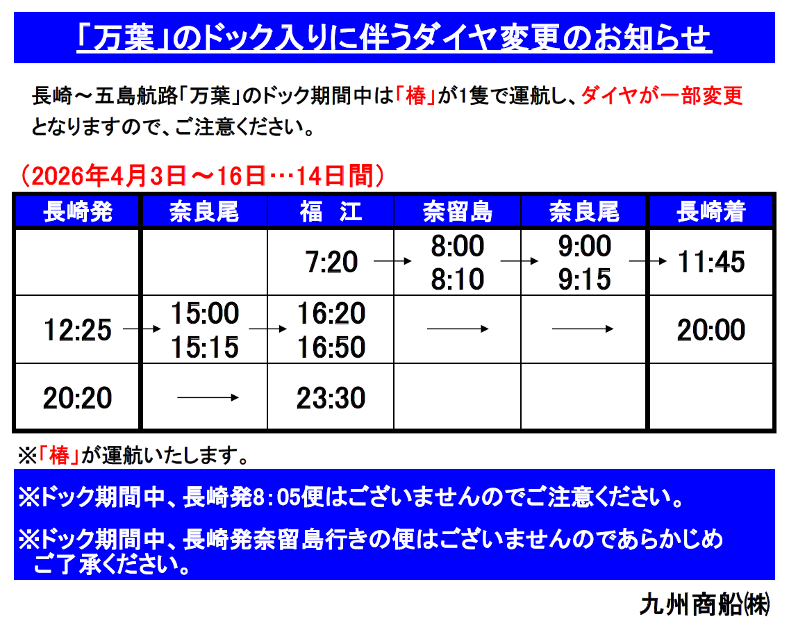 4月3日~4月16日【万葉】(長崎~五島 フェリー)