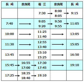 2026年4月~2027年3月の長崎~五島航路ジェットフォイル便の運航ダイヤをお知らせいたします。(10月~3月分は申請中)